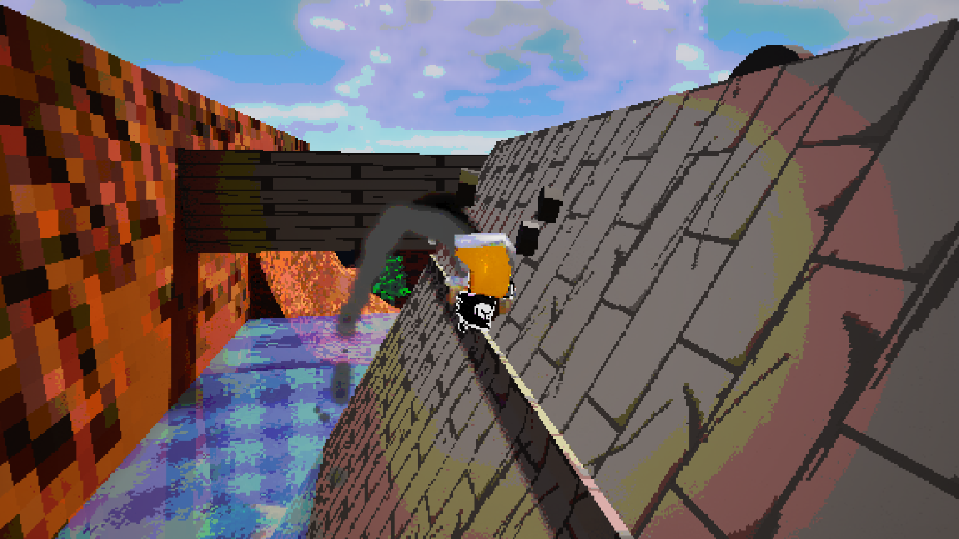 then a goofy kart racer mixed with 3d platforming, and you can take any route as long as it gets you to the next checkpoint